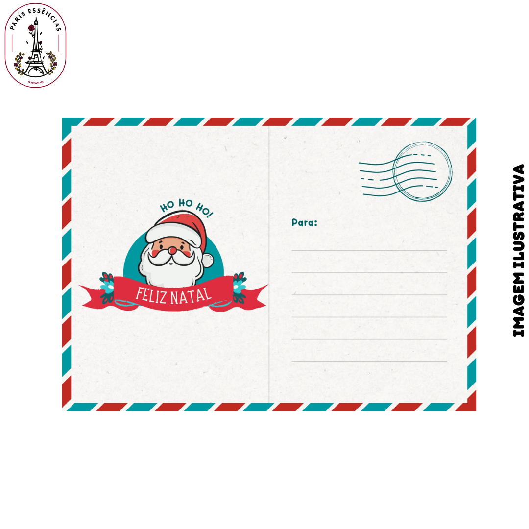 Ao lado, há a ilustração da cabeça do Papai Noel, com o texto “Ho Ho Ho!” acima e “Feliz Natal” logo abaixo — um visual alegre e festivo que encanta qualquer um!