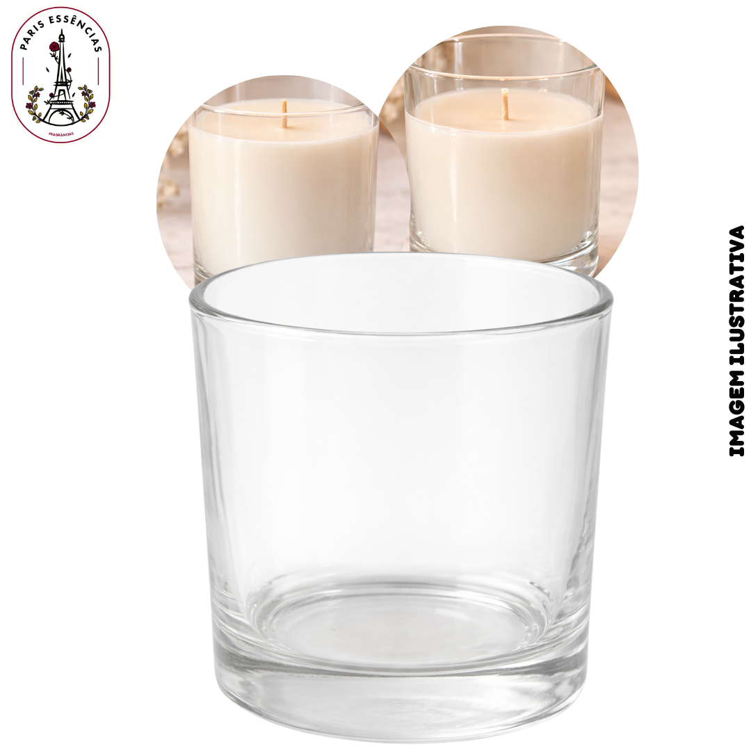 Fabricado em vidro resistente de alta qualidade, o copo garante estabilidade e segurança durante o processo de produção e queima. Seu formato cilíndrico com bordas suaves e superfície lisa proporciona um acabamento clean e moderno, destacando a vela como elemento central da decoração.
