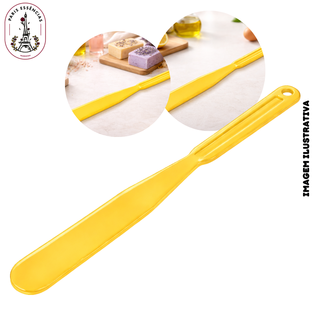 A Espátula Plástica Amarela Paris (G) é uma ferramenta prática e resistente, ideal para auxiliar em diversas atividades de artesanato e produção manual, como a fabricação de velas, sabonetes artesanais e cosméticos.