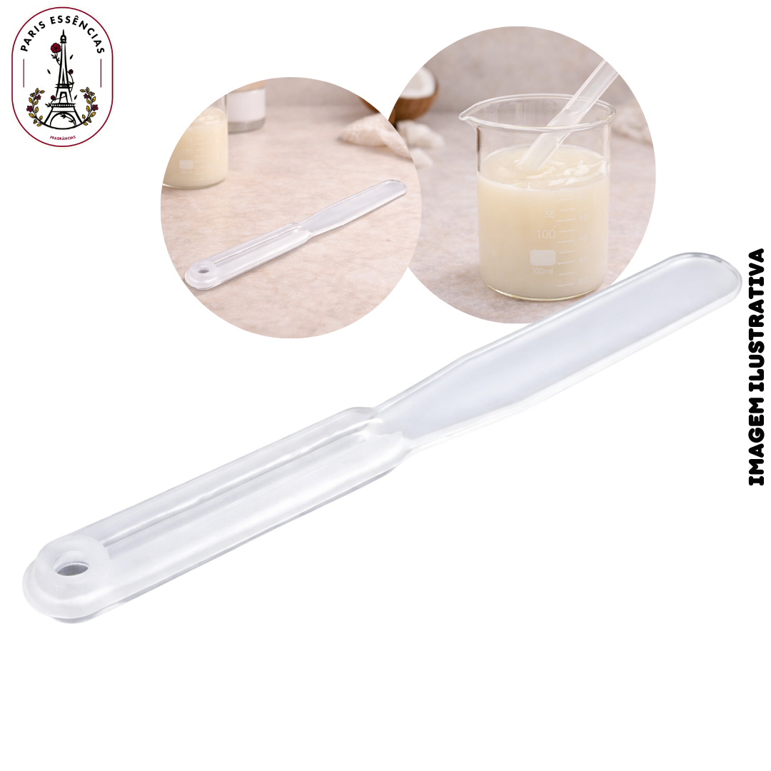 A Espátula Plástica Translúcida (P) é uma ferramenta prática e versátil, ideal para auxiliar em diversos processos de artesanato, especialmente na fabricação de velas, sabonetes artesanais e cosméticos.