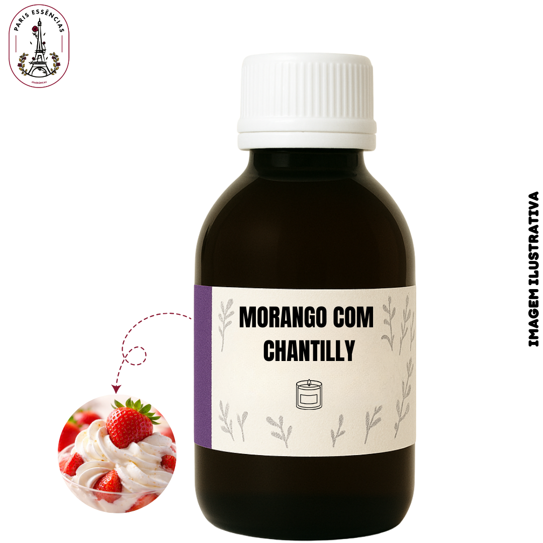 A fragrância se abre com a doçura fresca e frutada do morango, evolui para um coração cremoso e delicado de chantilly, e finaliza com um fundo macio e aconchegante, garantindo excelente projeção e perfumação sofisticada quando utilizada em velas artesanais.
