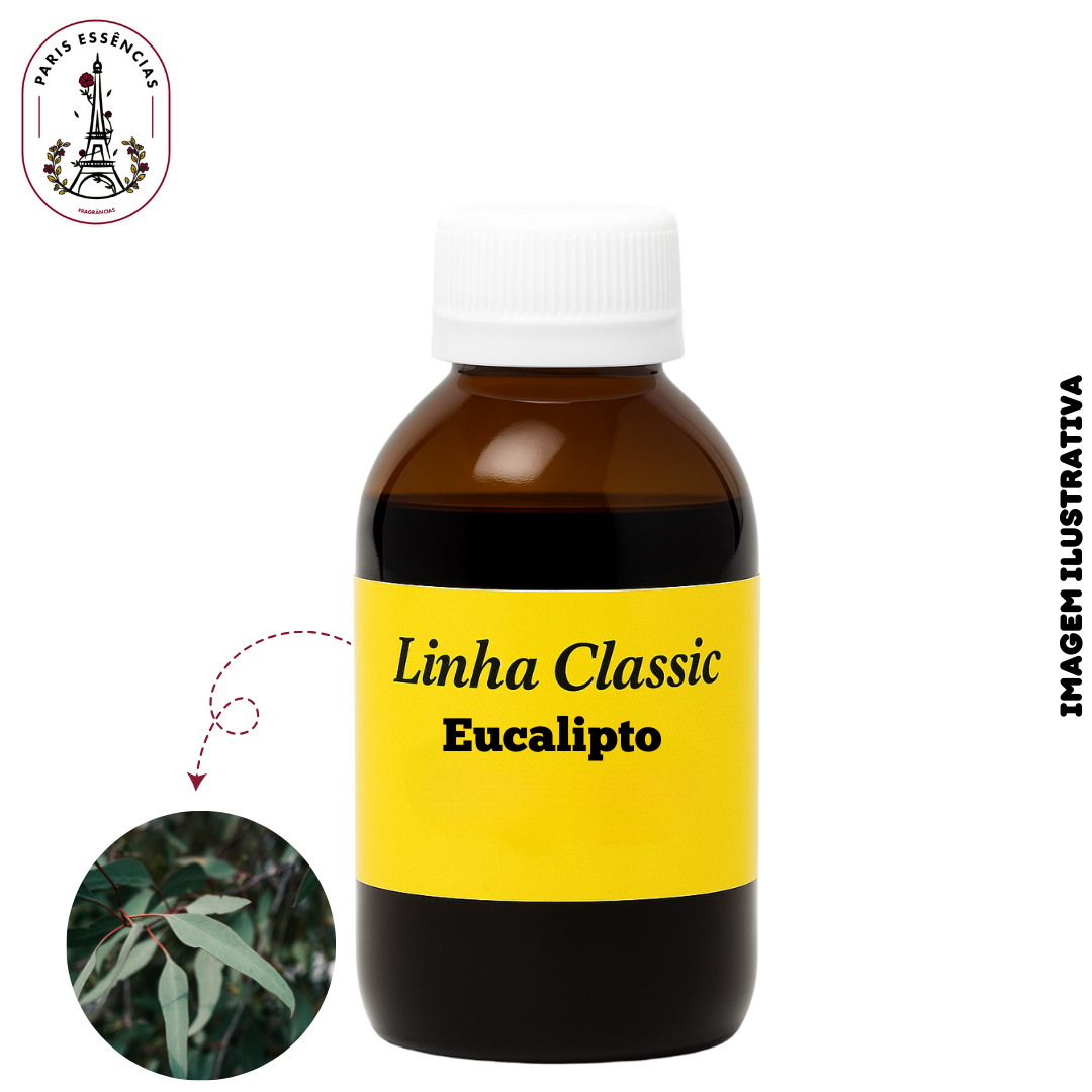 A Essência Eucalipto da Linha Classic é conhecida por seu perfume fresco, herbal e levemente mentolado, que proporciona uma sensação instantânea de ar puro, respiração limpa e ambiente energizado. É uma fragrância clássica, muito utilizada em produtos com apelo natural, terapêutico e purificante.