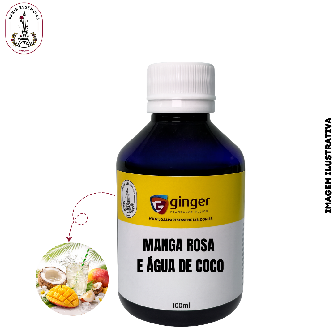 A Essência Manga Rosa e Água de Coco Ginger é uma fragrância tropical, leve e refrescante, que combina a doçura suculenta da manga rosa com a suavidade cremosa e aquática da água de coco. Seu aroma transmite sensação de verão, frescor e bem-estar, criando uma experiência olfativa alegre e envolvente.