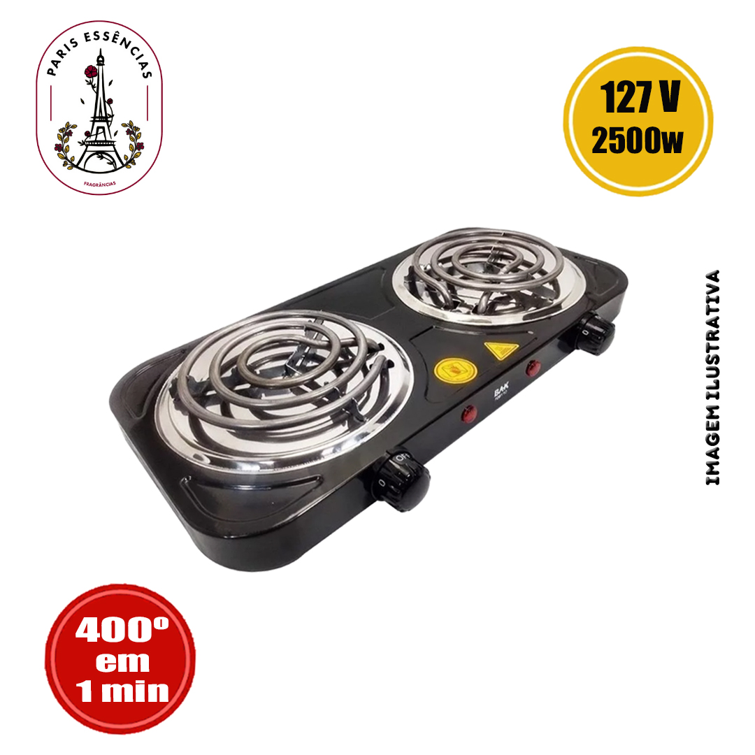 Transforme a produção artesanal de velas aromáticas, perfumes e essências com o Fogão Elétrico 110V 2 Bocas 2500W. Este equipamento versátil e potente é ideal para artesãos e profissionais que buscam eficiência e precisão no aquecimento e derretimento de matérias-primas, proporcionando um controle perfeito para a criação de produtos de alta qualidade.