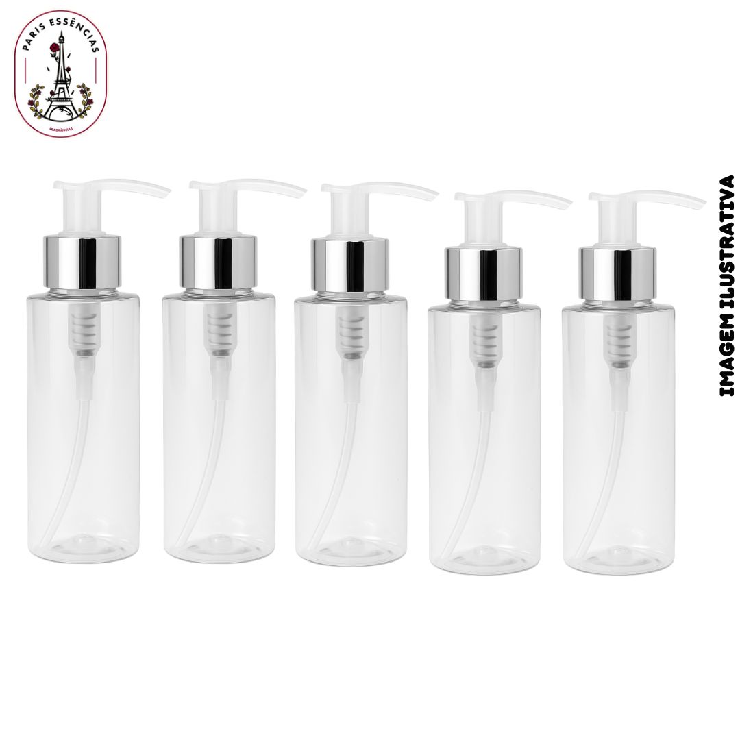 Frasco modelo cilíndrico reto com capacidade de 100ml, fabricado em PET transparente de alta qualidade, ideal para envase de sabonete líquido, loções, álcool gel, cremes e cosméticos em geral. Acompanha válvula saboneteira na cor prata, que proporciona um acabamento moderno e sofisticado ao produto.