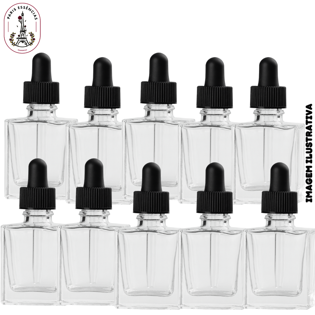 Kit com 10 Vidros 11 ml Quadrado – Com Conta-Gotas Canelado
