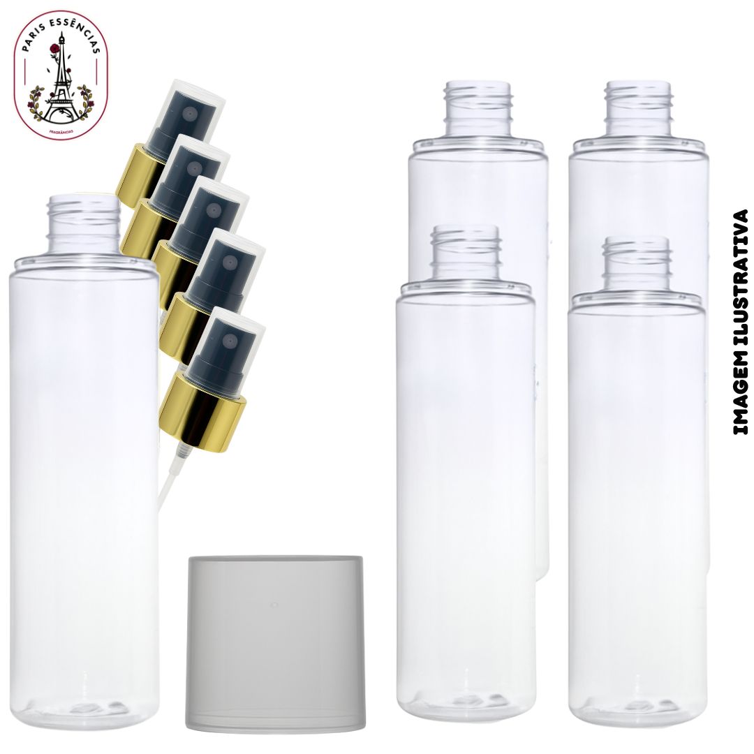 Kit com 5 Frascos para Body Splash – 200ml (Baixo) c/ Válvula Spray Preta Lisa