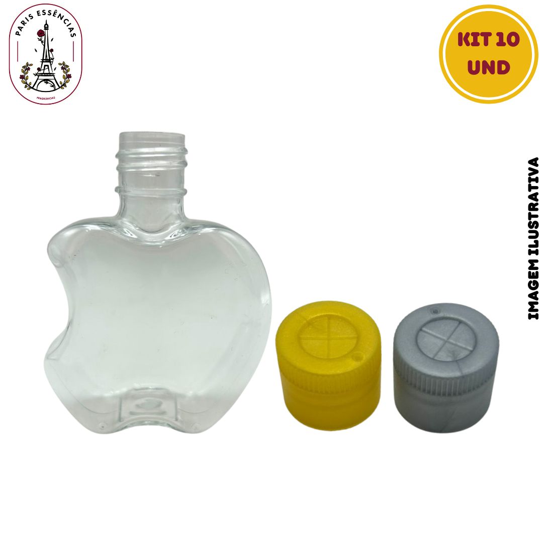Kit 50 Unidades - Frasco PET Maçã Mordida 50ml c/ Tampa Plástica (Prata ou Dourada)