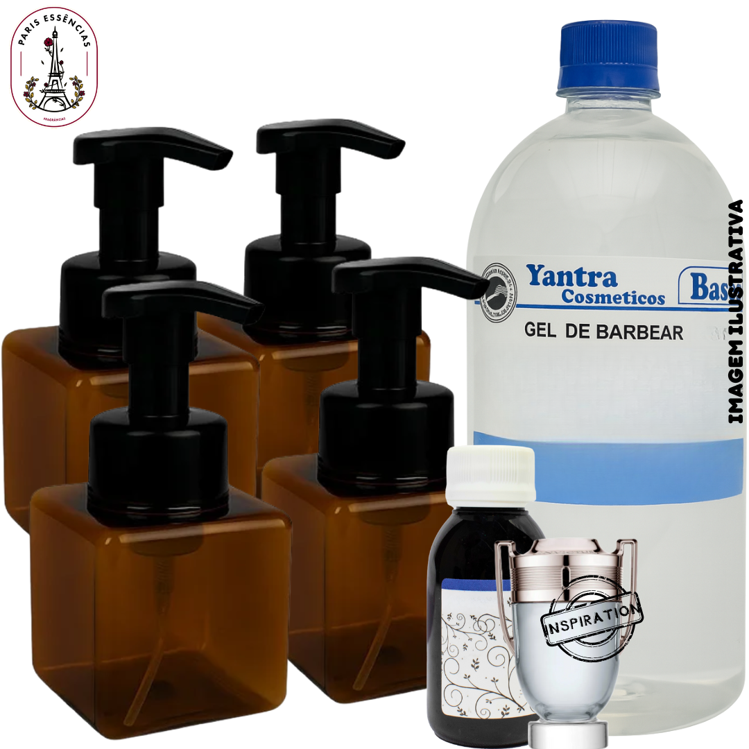 O Kit Gel de Barbear foi desenvolvido especialmente para quem deseja iniciar a produção artesanal de produtos masculinos ou personalizar sua própria linha. Composto por base pronta para uso, frascos espumadores e uma essência de perfumaria fina de 60ml à sua escolha, é ideal para criadores de cosméticos, kits de barbear, brindes personalizados ou uso pessoal.
