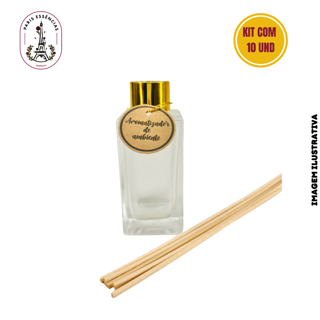 Kit para Lembrancinha - Aromatizador de Ambiente 50ml (10 Unidades) + Tags Kraft (10 Unidades) + Varetas de Madeira (10 Pacotes)