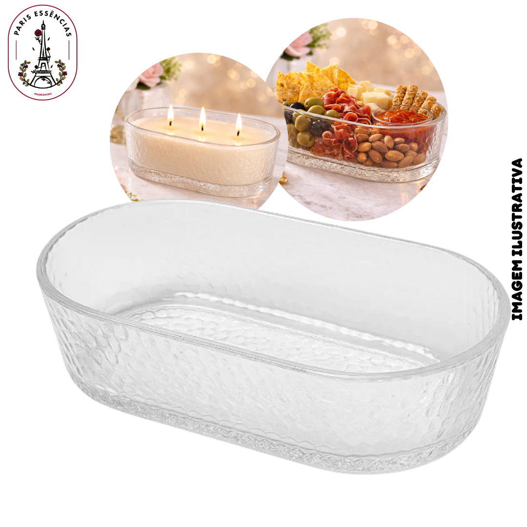 Eleve o nível das suas criações com a nossa Petisqueira Decorativa de Vidro, um item versátil, elegante e funcional. Desenvolvida com design sofisticado e acabamento em textura detalhada tipo colmeia, essa peça não é apenas um utensílio decorativo — é a base perfeita para velas artesanais que encantam pelo visual e pela qualidade.