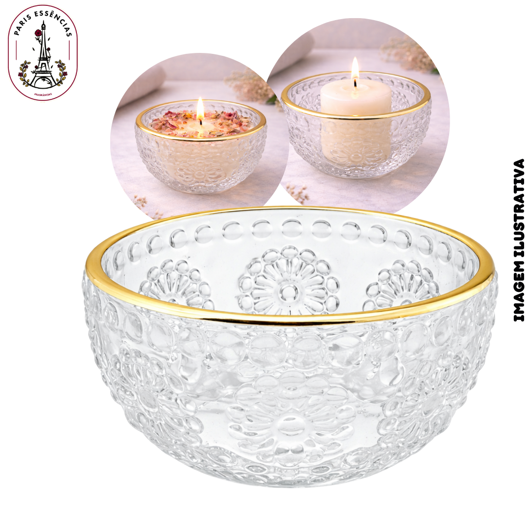 Porta Vela de Vidro com Borda Dourada – Elegância e Sofisticação para seu Ambiente