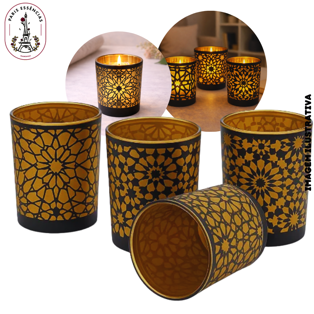 Porta Vela Castiçal Cônico em Vidro Decorado – Mandalas | 7x5,5cm – Modelos Sortidos