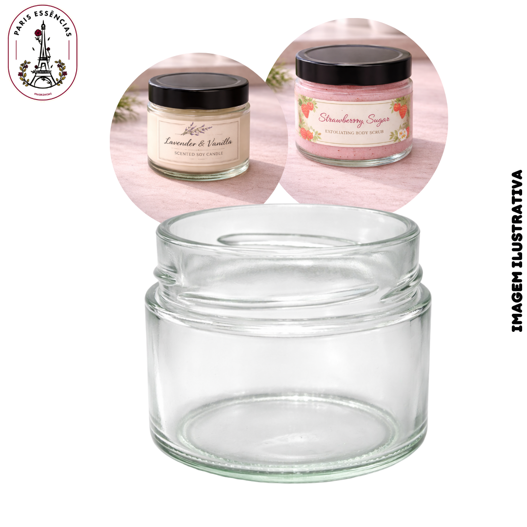 Com design compacto e vidro resistente, é perfeito para velas artesanais, geleias de banho, doces, compotas, temperos e muito mais, valorizando a apresentação do seu produto.