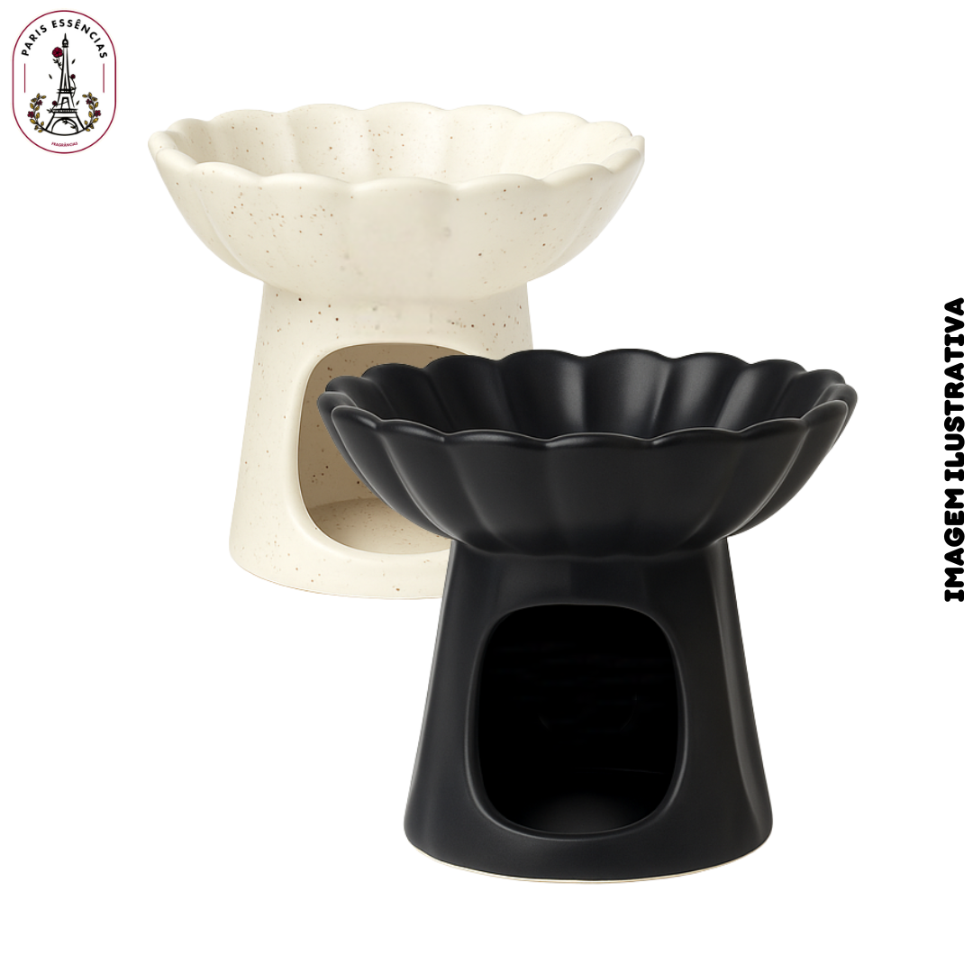 Réchaud de Cerâmica para Óleos Flower – Creme e Preto (Unidade)
