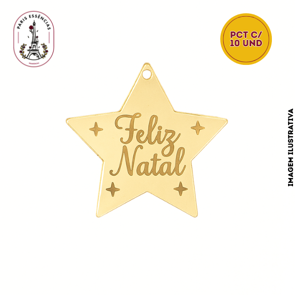 Pingente Estrela “Feliz Natal” – Pacote com 10 unidades (Cores Sortidas)