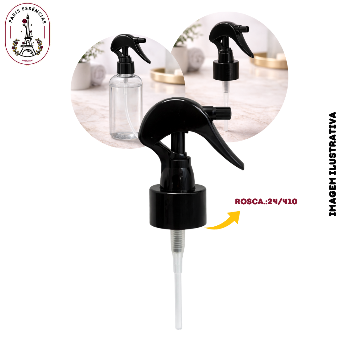 Válvula gatilho na cor preta, com design funcional e acabamento elegante, indicada para a aplicação de produtos líquidos. Muito utilizada em água perfumada(água para lençóis), aromatizadores de ambiente, cosméticos e diversas soluções líquidas em geral, garantindo praticidade e eficiência na pulverização.
