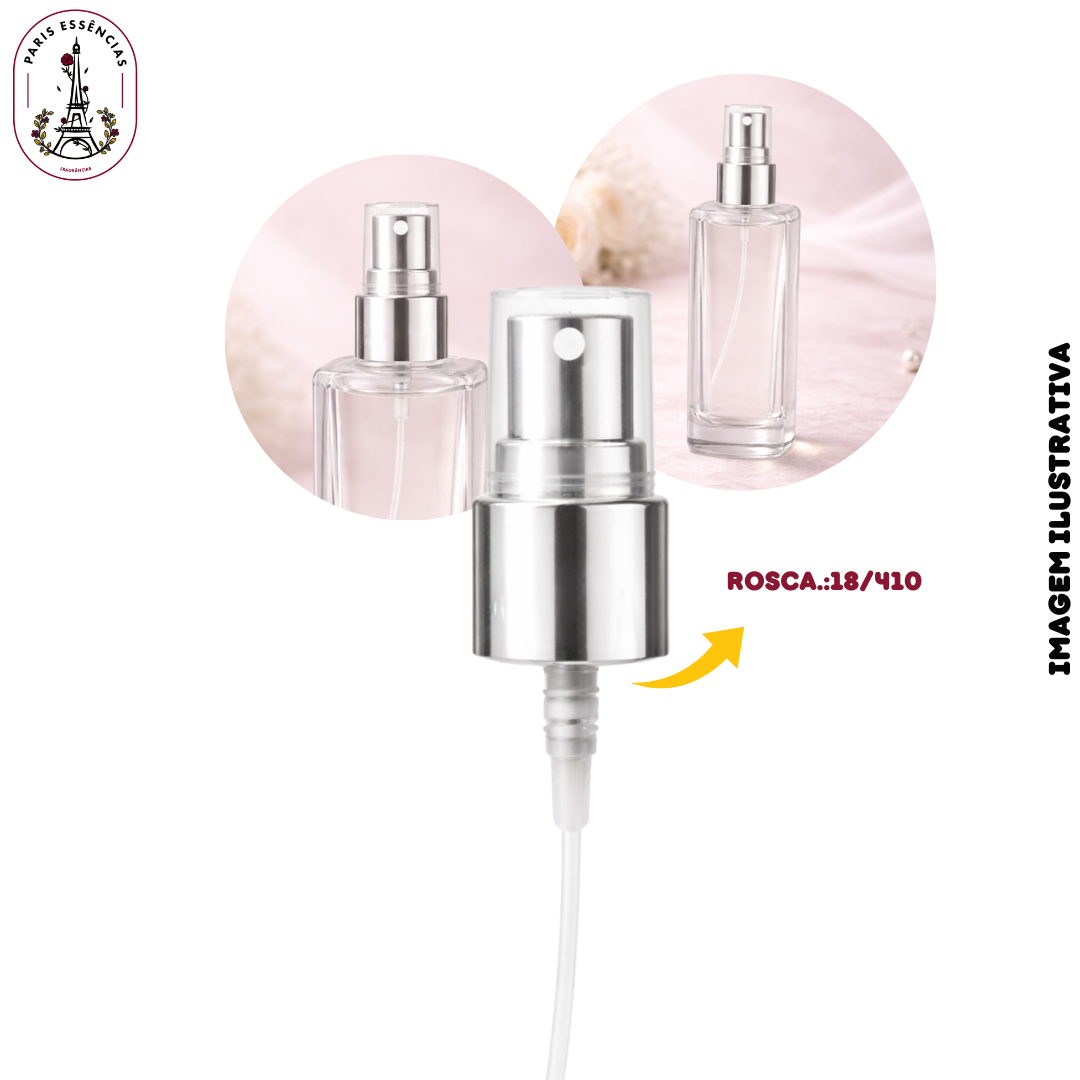 A Válvula Spray 18/410 Prata é indicada para frascos com rosca 18/410, muito utilizada em produtos de perfumaria, cosméticos, aromatizadores de ambiente e soluções líquidas em geral.