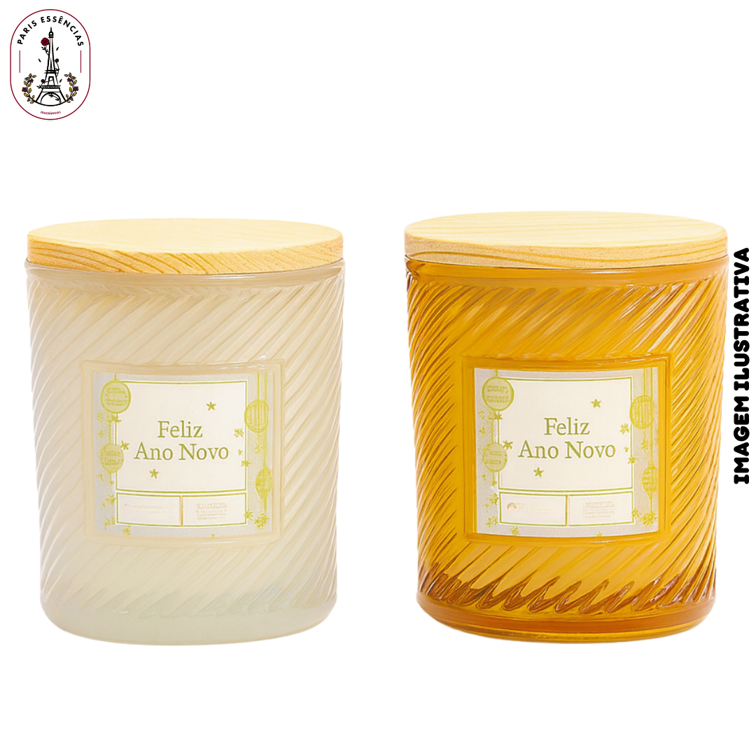 Vela Aromática "Feliz Ano Novo" – Tampa de Madeira – Color (Unidade)