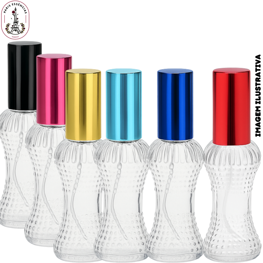 O Vidro Cintura 50ml com Spray é a combinação perfeita entre elegância e funcionalidade. Com formato anatômico e design refinado, esse frasco de vidro transparente se destaca pelas opções de válvulas spray super luxo coloridas, que adicionam um toque moderno e exclusivo às suas criações.