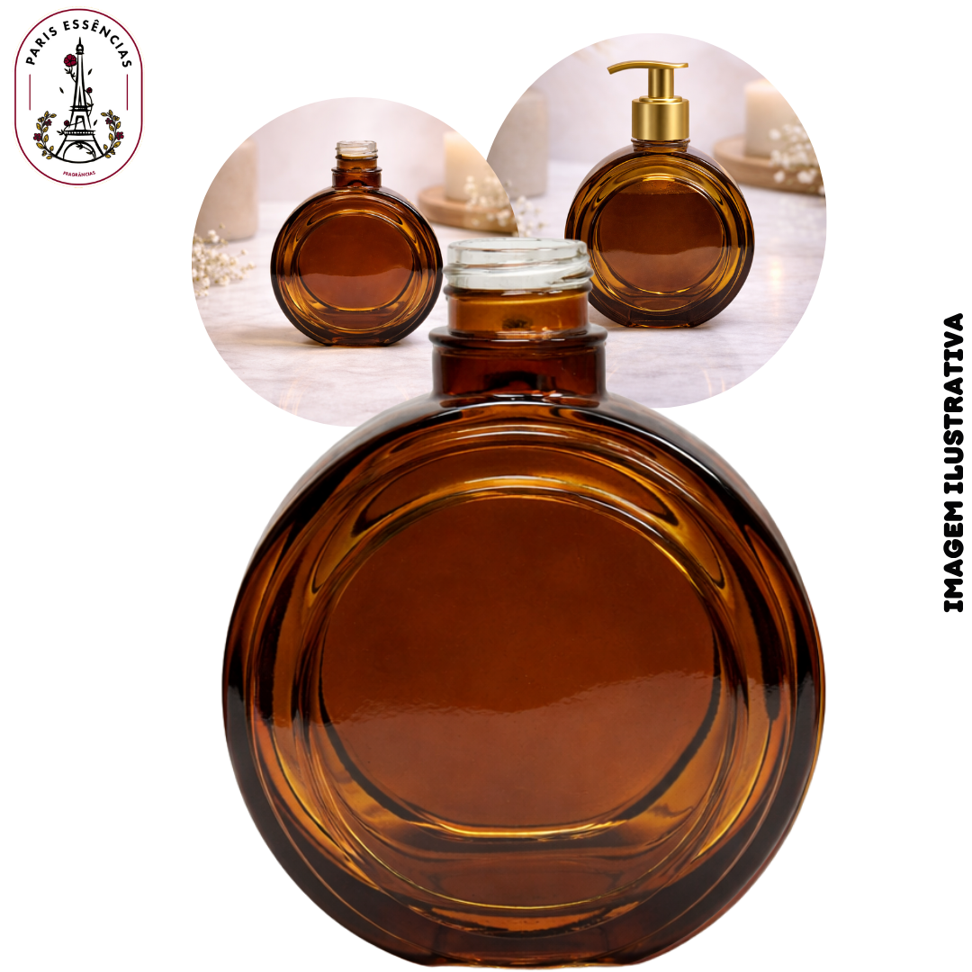 O Vidro Lunaire 300ml na cor Âmbar com rosca 28/410 é ideal para compor kits de aromatizadores de ambiente, sabonetes líquidos ou home sprays, oferecendo um acabamento elegante e sofisticado.