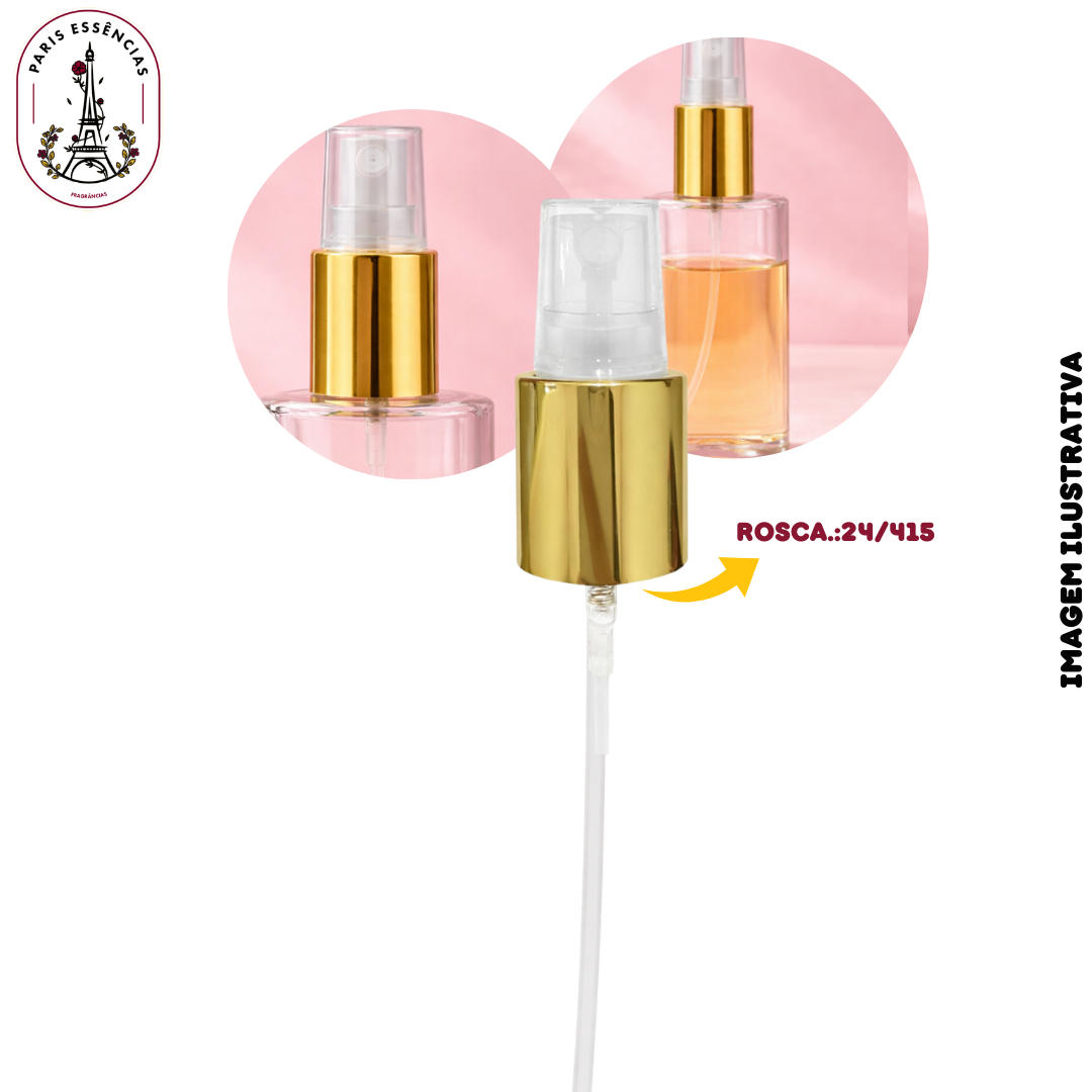 A Válvula Spray Luxo Dourada com Capa Transparente 24/415 é indicada para frascos com rosca padrão 24/415, sendo ideal para uso em perfumaria, cosméticos, aromatizadores de ambiente e soluções líquidas em geral.
